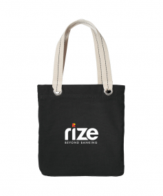 The Allie Tote is perfect for shopping, commuting or sightseeing. Contrast lining, striped handles and large metal grommets add a touch of whimsy to this casual tote. 11 Oz., cotton canvas. Interior zippered pocket. 13.25" W x 15.75" H x 3.5" D.